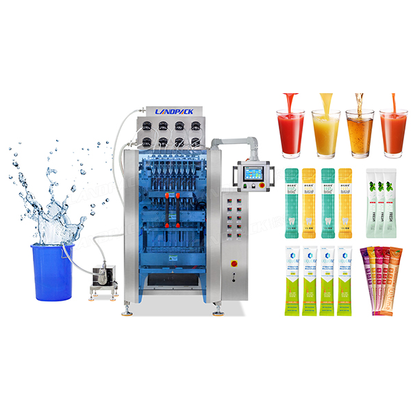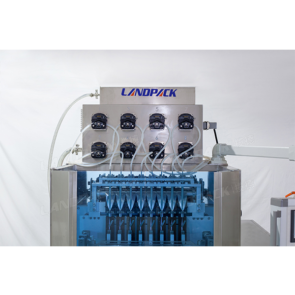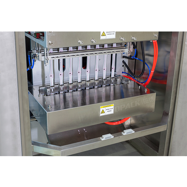 整機采用8頭通道 、卷膜、制袋、封切、封口一體機設(shè)備。適用產(chǎn)品主要為液體類,如簌口水、速溶飲料、蜂蜜、果汁、果凍、辣椒油等不同液體狀態(tài)的產(chǎn)品。