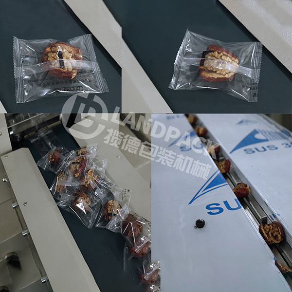 這款單粒紅棗包裝機比較好的地方是采用人工進行投放物料,操作人員把單個紅棗擺放到傳送袋上面,一個一個輸送過去,可以保證紅棗不會移位,包裝出來的紅棗樣式比較好看。同時這臺機器的速度是可以根據(jù)人工的投放物料速度而改變的,投料快,包裝速度就可以加快,投放物料慢,也可以手動調(diào)節(jié)機器包裝速度變慢。人工放料快的話,大概一分鐘可以包裝100顆紅棗。